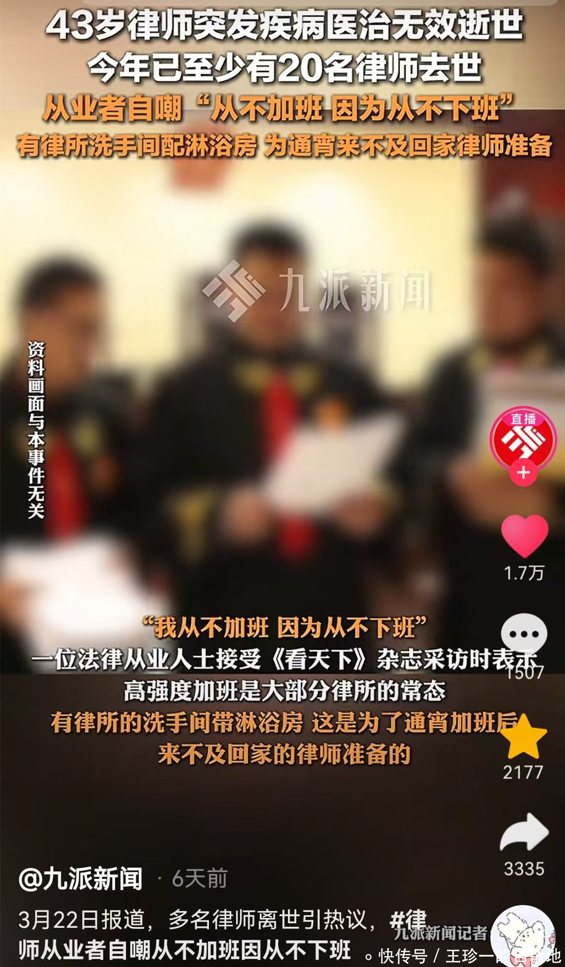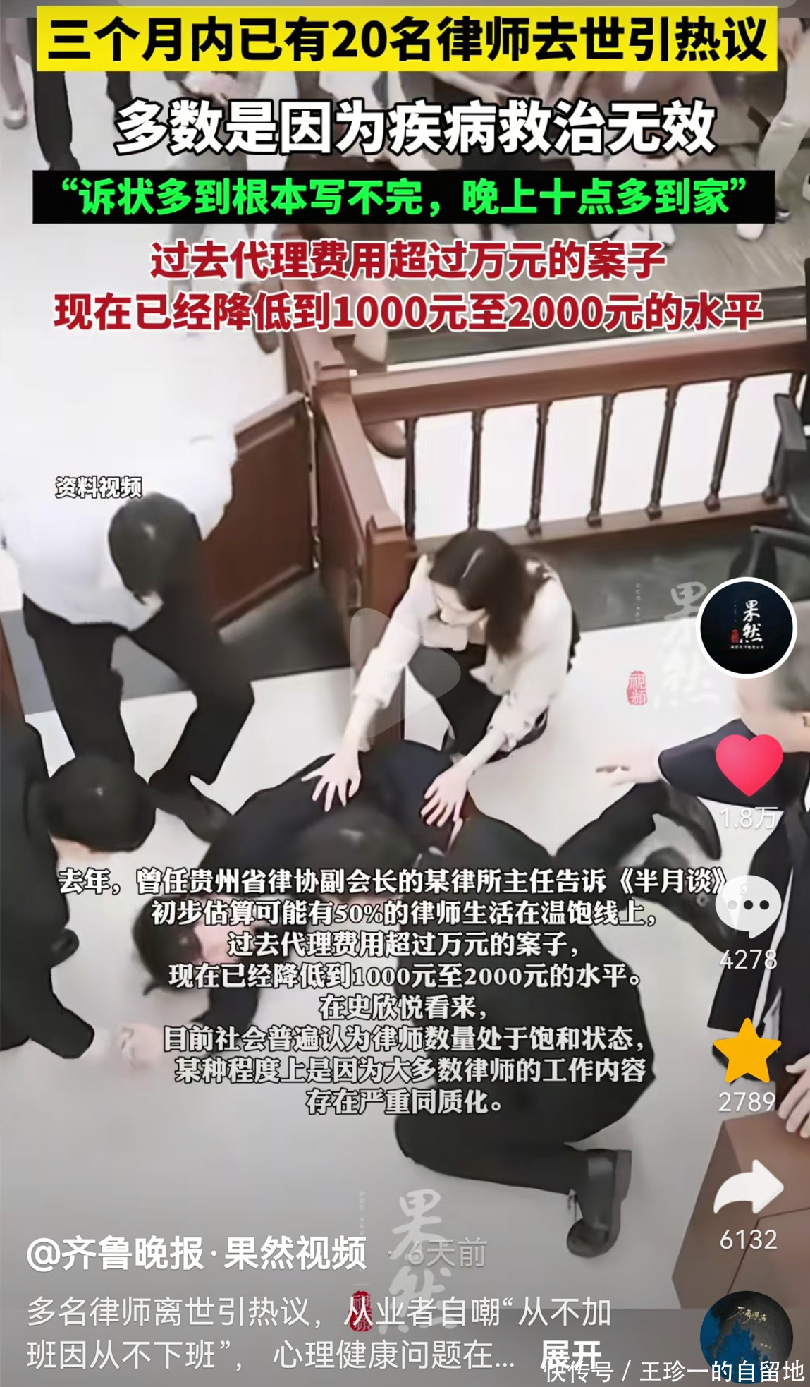 前几日,媒体报道称,2025年开年以来,已经有20名律师先后去世。