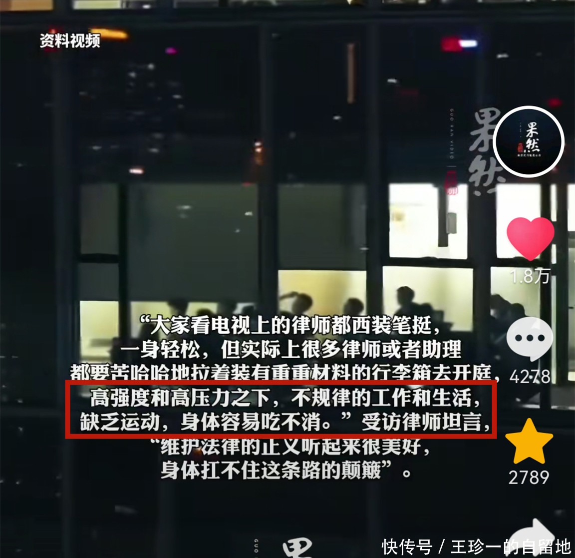 也因此在采访中,有律师感叹高强度和高压力之下,不规律的工作和生活,缺乏运动,身体容易吃不消。